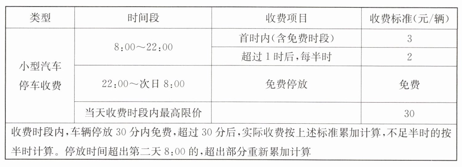 4. 广东真题 下表是某区域智慧停车位的收费标准。