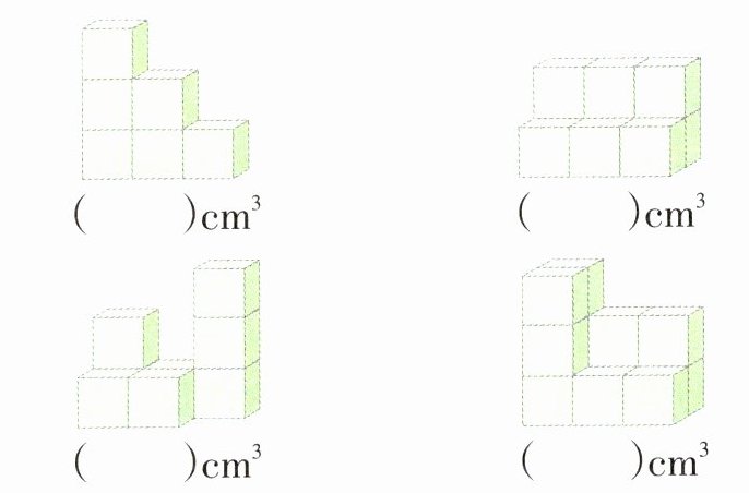 4. 下列图形都是用1 cm³的正方体搭成的,它们的体积各是多少?