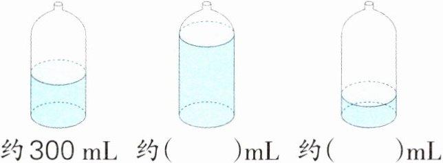 3. 根据第一个瓶子里的水量,估一估其他两个瓶子里的水大约有多少毫升。