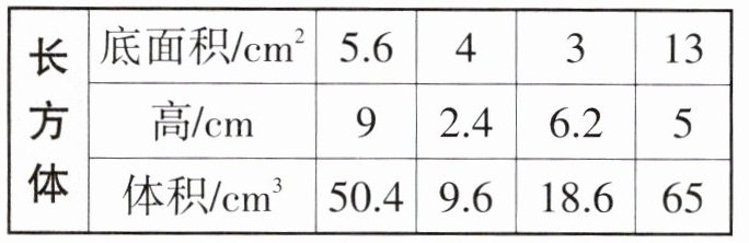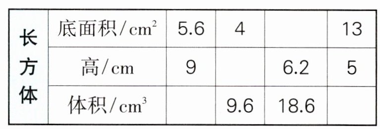 解析:用表面积减去2个底面积,得到侧面的面积,是$150 - 35\times2 = 80(cm^{2})$,侧面展开后的长是底面周长16 cm,则侧面展开后的宽是$80\div16 = 5(cm)$,所以长方体的高是5 cm,再根据长方体的体积 = 底面积×高得出体积。