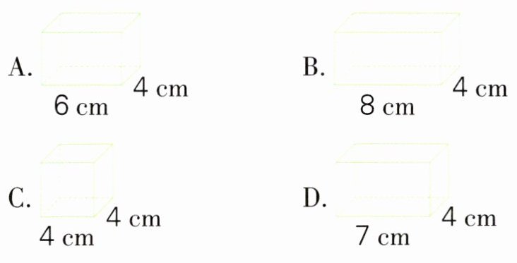 (3)在下面四个长方体容器中分别倒入同样多的水(均未满),水位最高的是( )。