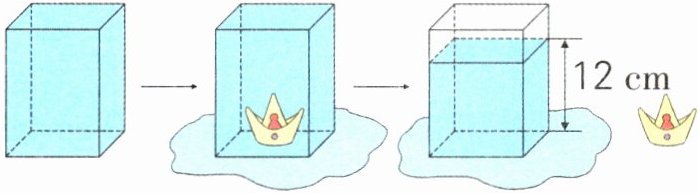 (2)如图,根据阿基米德的方法,把一顶皇冠放进一个长12 cm、宽12 cm、高15 cm的装满水的长方体容器中,这顶皇冠的体积是( )$cm^{3}$。