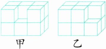 (1)下图是用大小相同的正方体搭成的,甲的表面积( )乙的表面积,甲的体积( )乙的体积。