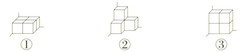 【错因分析】分别从正面、上面、侧面观察可知,图①有8个面露在外面,图②有9个面露在外面,图③有8个面露在外面,所以图②露在外面的面的个数最多。