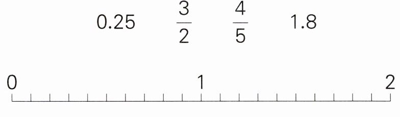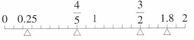 2. 在下面的尺子上用“△”标出下面各数的大致位置,并写出相对应的数。