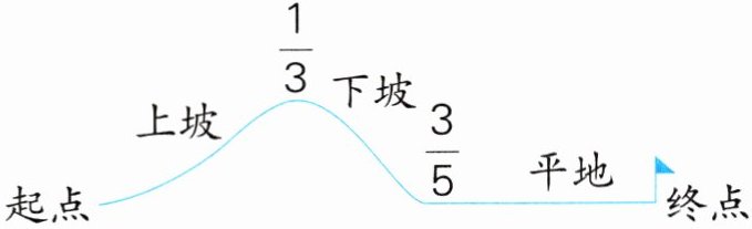 4. 骑行训练场由三部分路段组成,从起点到全程的$\frac{1}{3}$处是上坡路段,从全程的$\frac{1}{3}$到$\frac{3}{5}$处是下坡路段,其余的是平地路段,已知平地路段长8.4 m。全程为多少米?