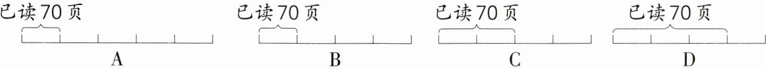 2. (名校期末真题)在“童心向党读经典”活动中,淘气选择阅读一本红色经典书籍。下图中,( )能正确表示“淘气已经读了70页,是全书总页数的$\frac{1}{4}$”。