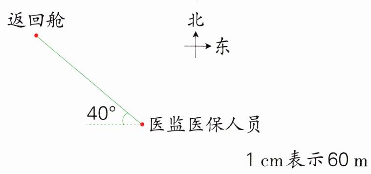 (1)向西偏北40°(或北偏西50°)方向走180 m到达返回舱。