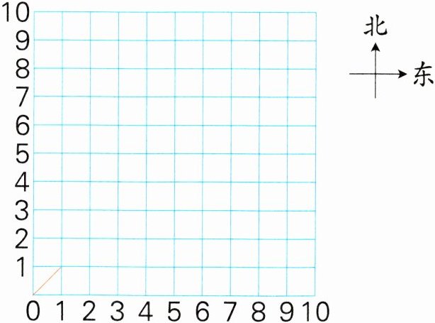 六、如图,如果一个小正方形的对角线长10 cm,则点(0,0)东偏北45°方向50 cm处是点( );点(6,4)南偏西45°方向30 cm处是点( );( )西偏北45°方向20 cm处是(5,6)。