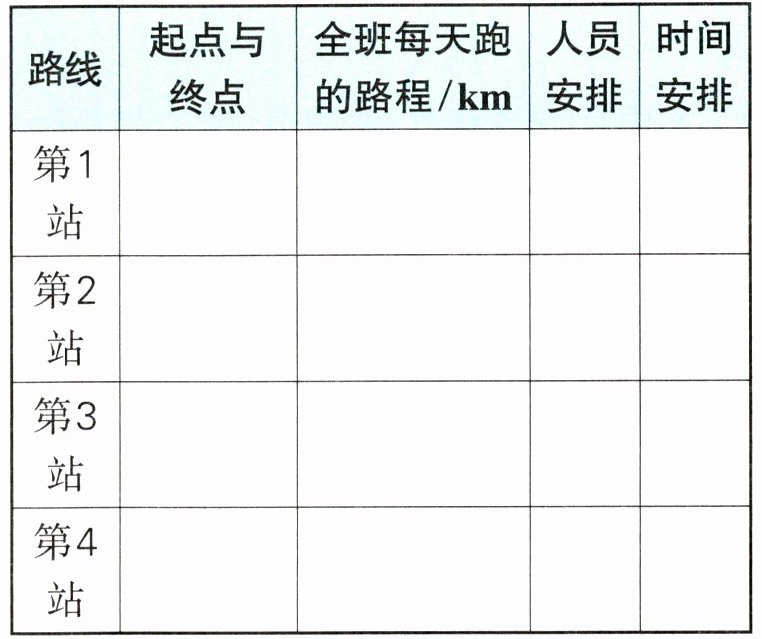 (4)如果你所在的班级用接力方式跑完上述全程,根据数据设计象征性长跑的方案,并填写下表。