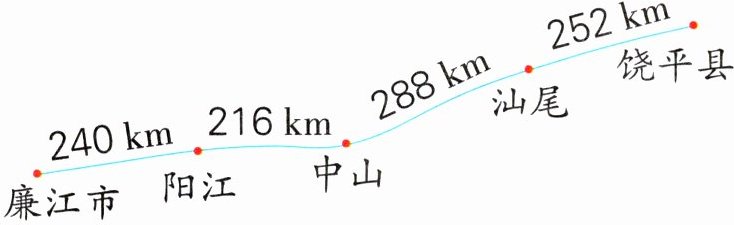 (1)计算出从饶平县到廉江市一共要跑多少千米。