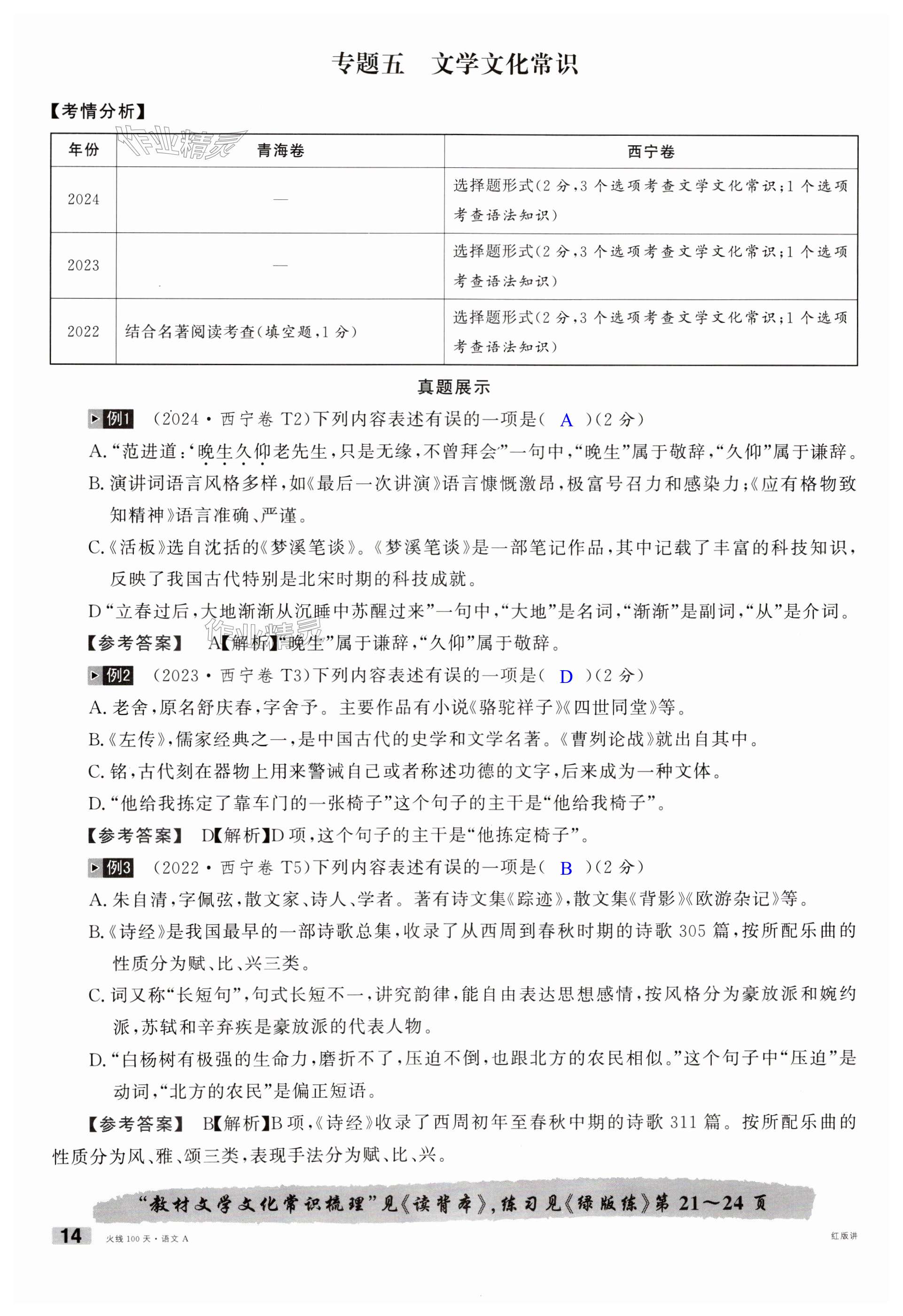注:目前有些书本章节名称可能整理的还不是很完善,但都是按照顺序排列的,请同学们按照顺序仔细查找。练习册 2025年火线100天语文青海专版 答案主要是用来给同学们做完题方便对答案用的,请勿直接抄袭。