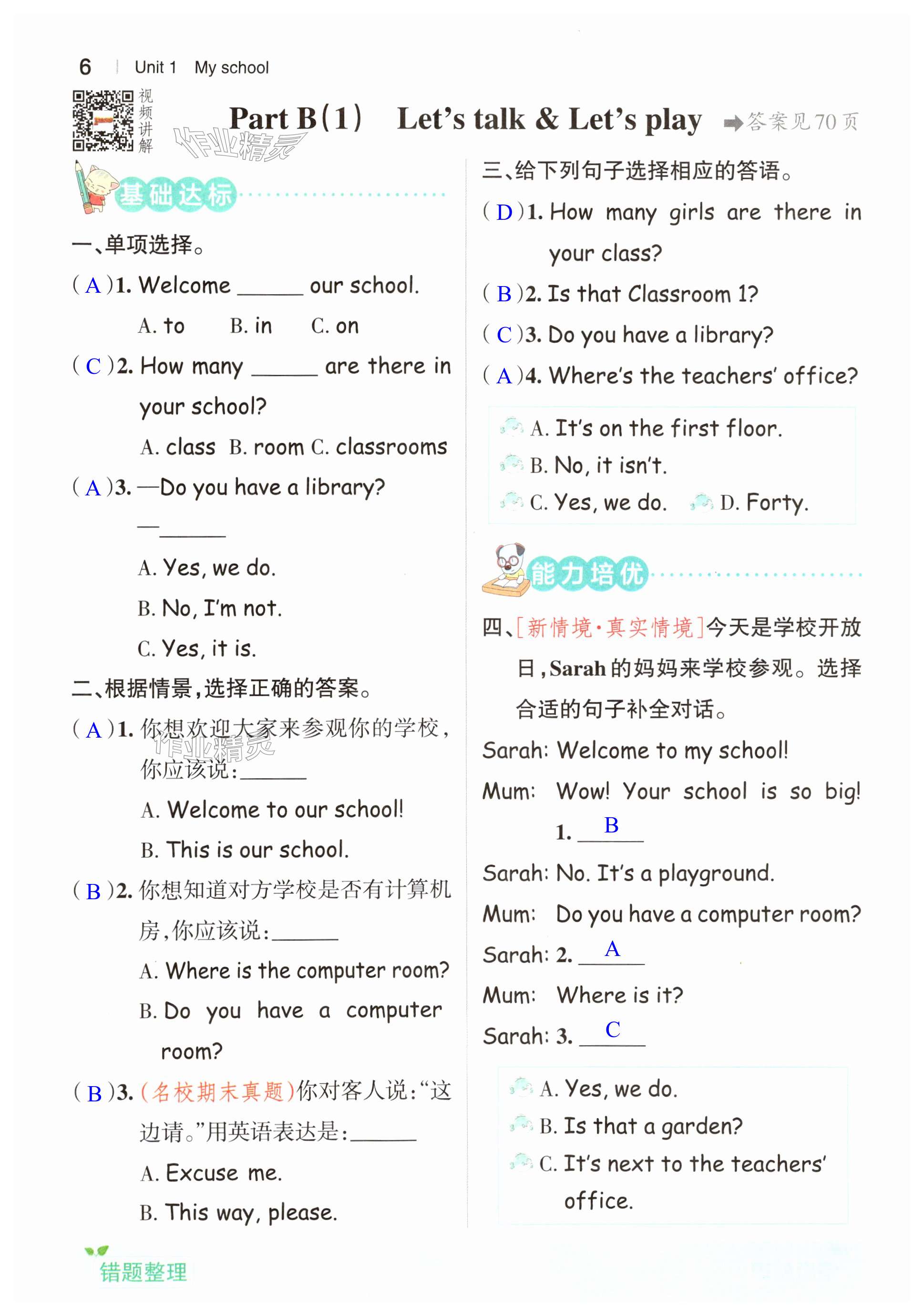 注:目前有些书本章节名称可能整理的还不是很完善,但都是按照顺序排列的,请同学们按照顺序仔细查找。练习册 2025年小学学霸作业本四年级英语下册人教版 答案主要是用来给同学们做完题方便对答案用的,请勿直接抄袭。