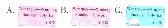 ( )1. Tina wants to go to Xinjiang. She should get the ticket ______.