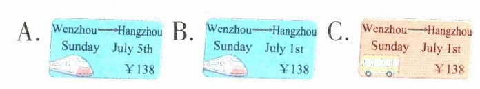 ( )2. Joy wants to go to Hangzhou. She should get the ticket ______.