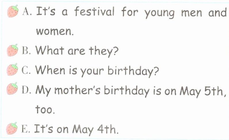 —When is the singing contest?—It's on February 2nd.@@—When is the maths test?—It's on July 5th.