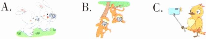 任务一:为Kevin的朋友圈选择四幅配图,在括号内打“√”。