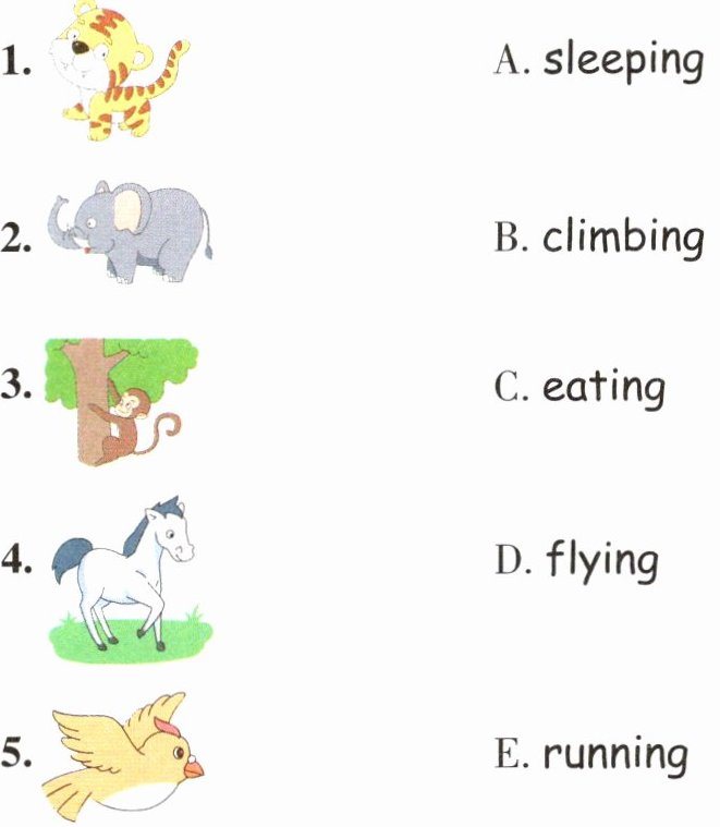 ( )4. A. He is eating. B. She's jumping. C. They're sleeping.