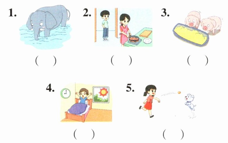 ( )5. A. He's drinking tea. B. She's cooking. C. I'm washing clothes.