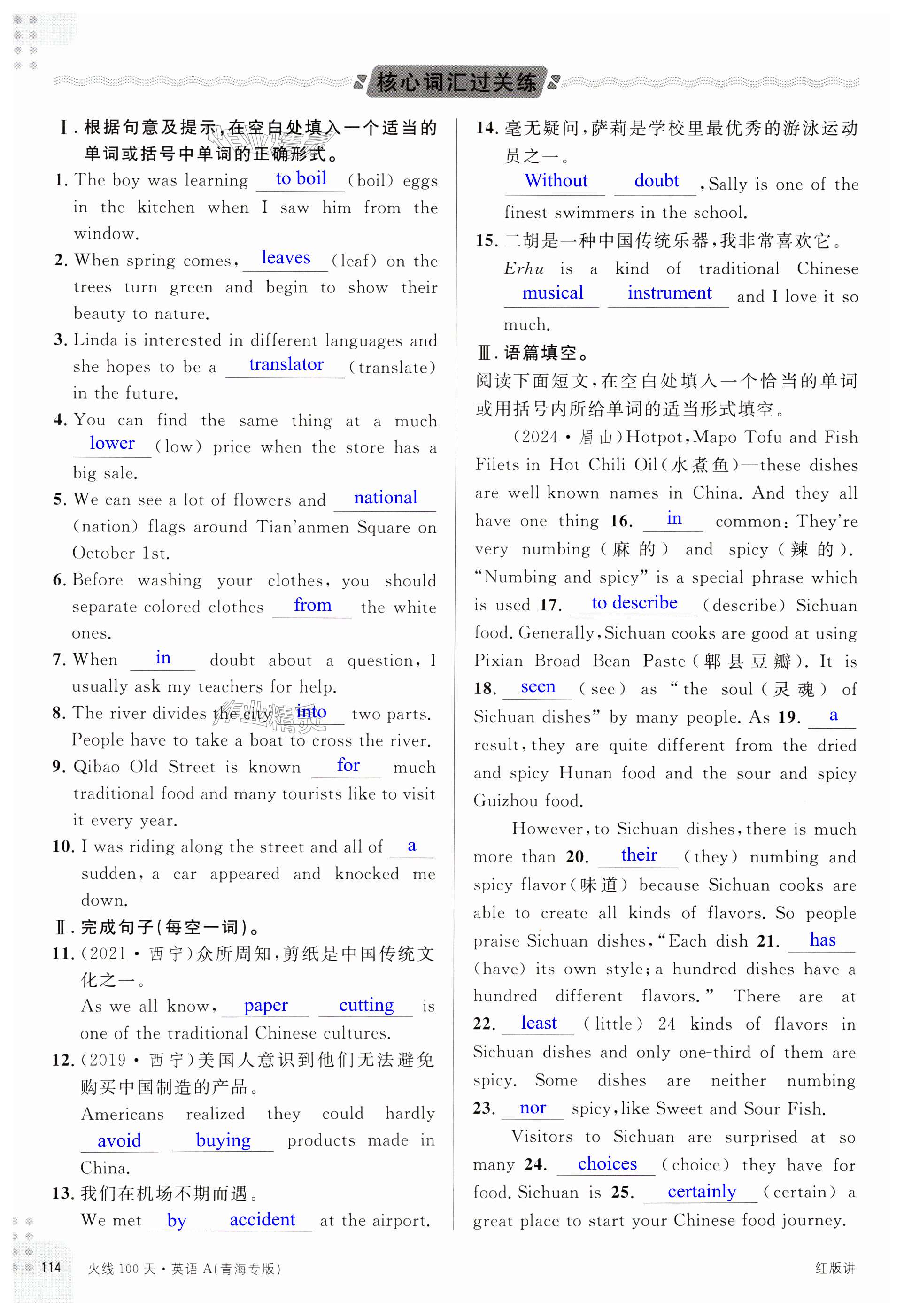 注:目前有些书本章节名称可能整理的还不是很完善,但都是按照顺序排列的,请同学们按照顺序仔细查找。练习册 2025年火线100天中考滚动复习法英语青海专版 答案主要是用来给同学们做完题方便对答案用的,请勿直接抄袭。