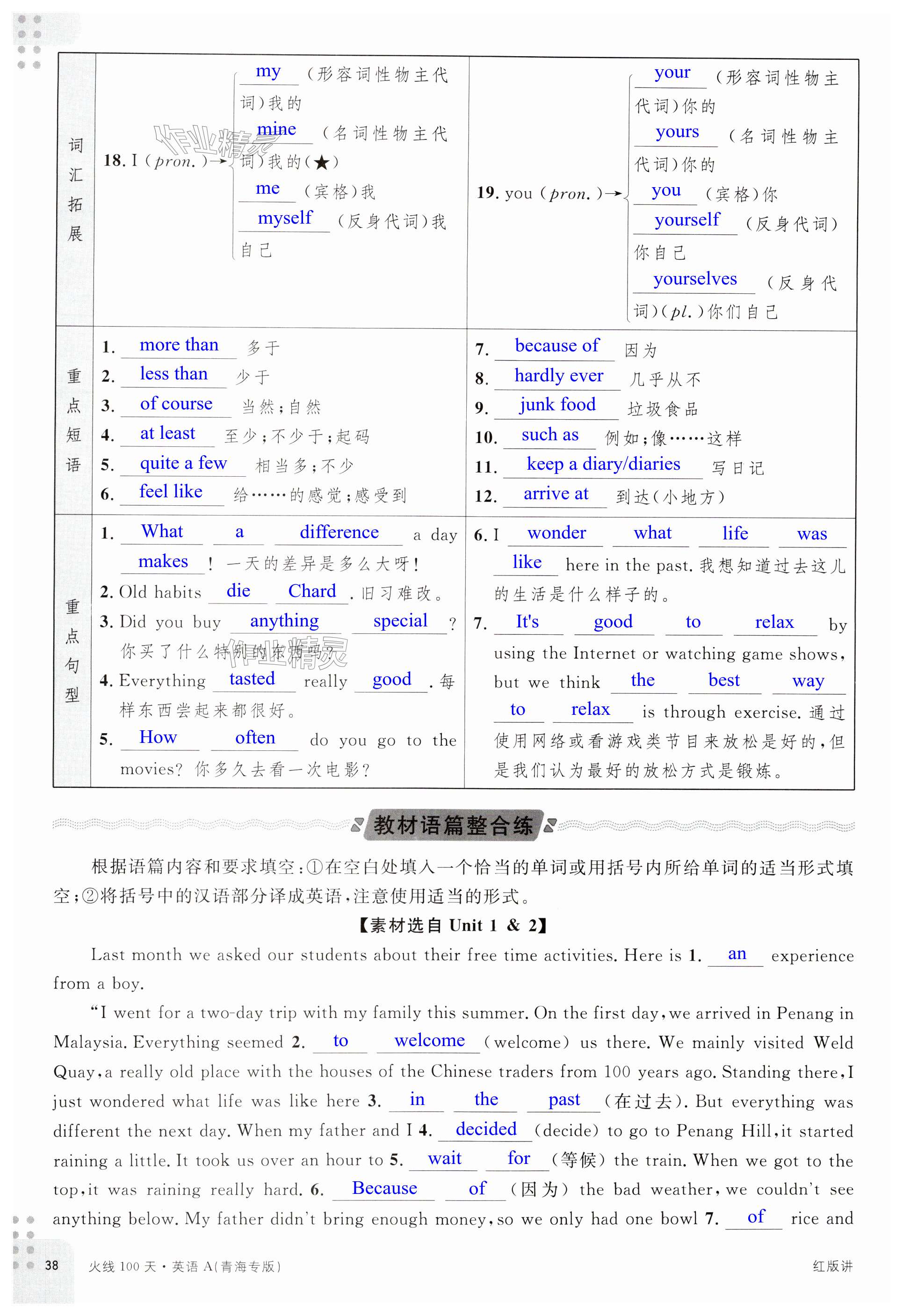 注:目前有些书本章节名称可能整理的还不是很完善,但都是按照顺序排列的,请同学们按照顺序仔细查找。练习册 2025年火线100天中考滚动复习法英语青海专版 答案主要是用来给同学们做完题方便对答案用的,请勿直接抄袭。