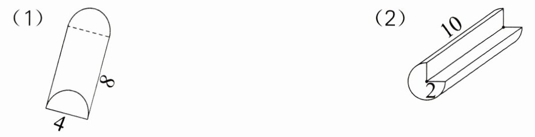 62.8 + 4×8 = 94.8(cm²)@@3.14×2²×2×3/4 = 18.84(cm²)