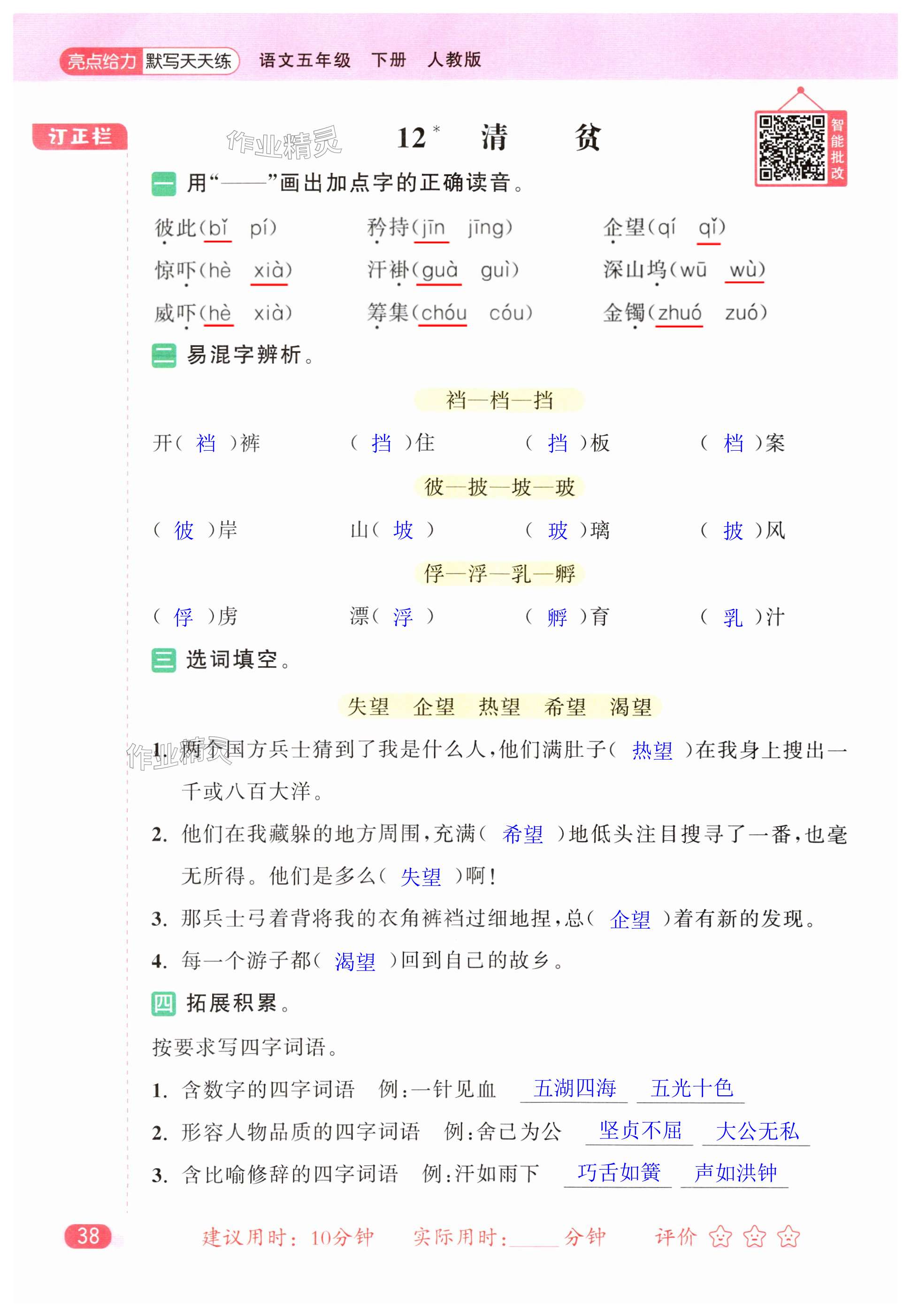 注:目前有些书本章节名称可能整理的还不是很完善,但都是按照顺序排列的,请同学们按照顺序仔细查找。练习册 2025年亮点给力默写天天练五年级语文下册人教版 答案主要是用来给同学们做完题方便对答案用的,请勿直接抄袭。