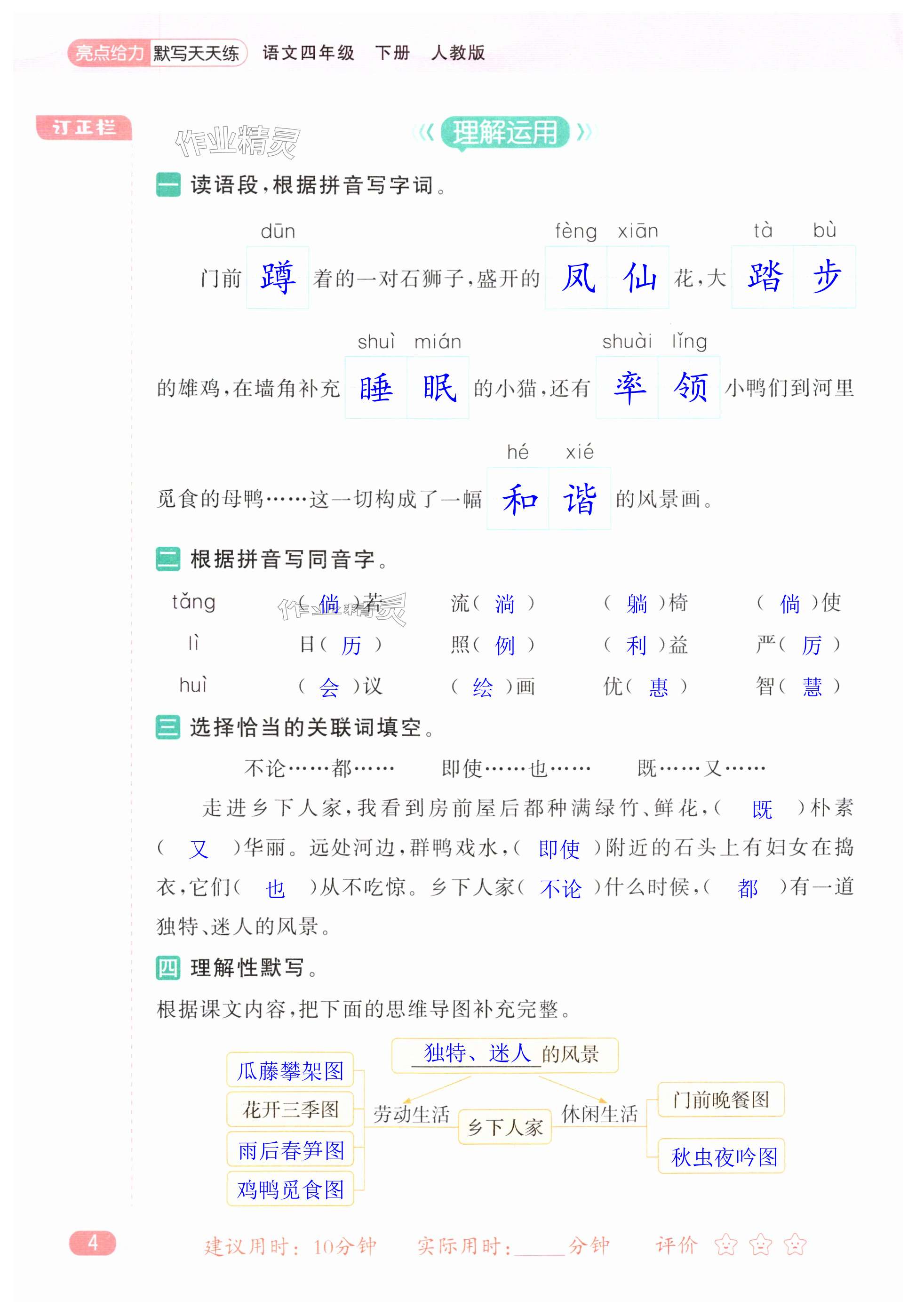 《2025年亮点给力默写天天练四年级语文下册人教版》