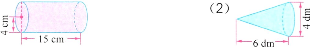 3. 求下面圆柱和圆锥的底面周长和底面积。