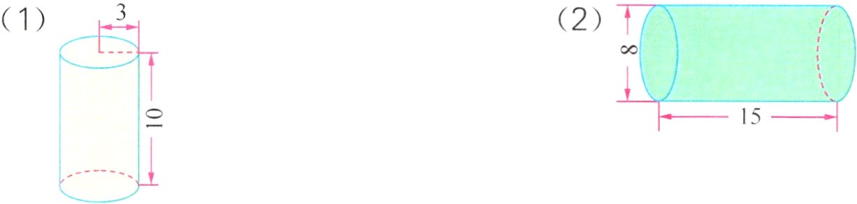 (2) $8 \times 3.14 \times 15 + (8 \div 2)^{2} \times 3.14 \times 2 = 477.28(cm^{2})$