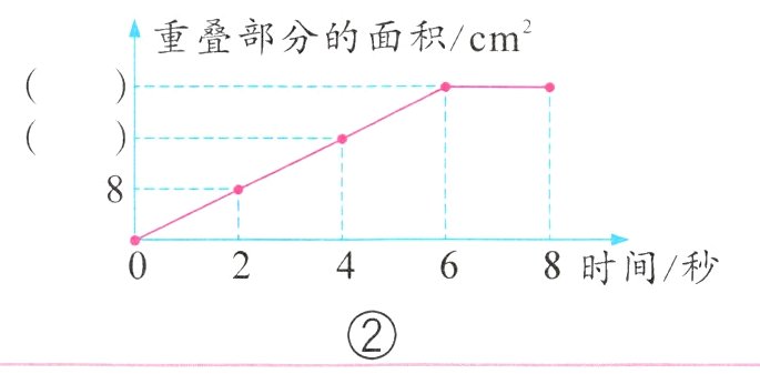 如图①,一个长方形从一个正方形的左边向右平移,每秒平移2厘米;图②是长方形在平移过程中与正方形重叠部分的面积和时间的关系图。将图②补充完整。