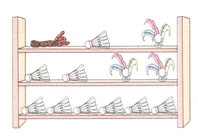 时拿掉2只羽毛球,这两层剩下的体育用品