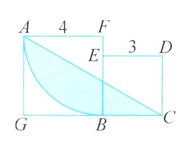 解析:由图可知,用正方形$AFBG$的面积减去扇形$AFB$的面积,得到左下角空白部分的面积,再用三角形$AGC$的面积减去左下角空白部分的面积即可求得涂色部分的面积。