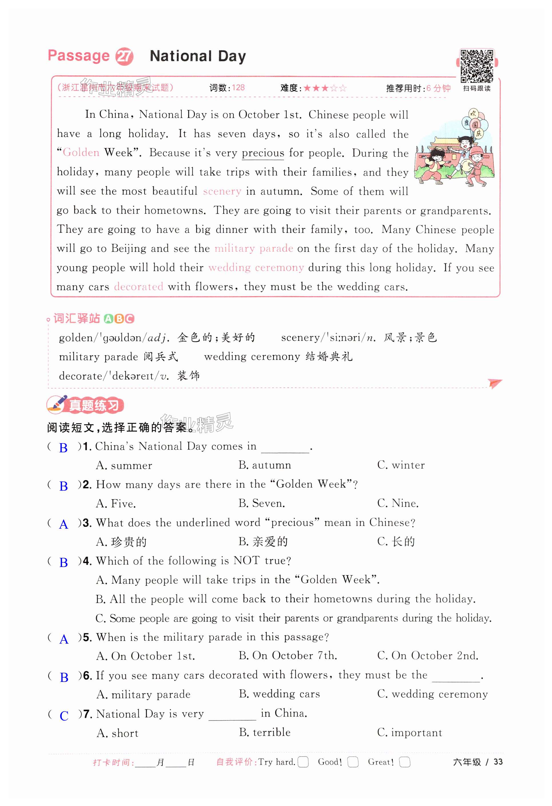 注:目前有些书本章节名称可能整理的还不是很完善,但都是按照顺序排列的,请同学们按照顺序仔细查找。练习册 2025年阳光同学阅读真题80篇六年级英语 答案主要是用来给同学们做完题方便对答案用的,请勿直接抄袭。