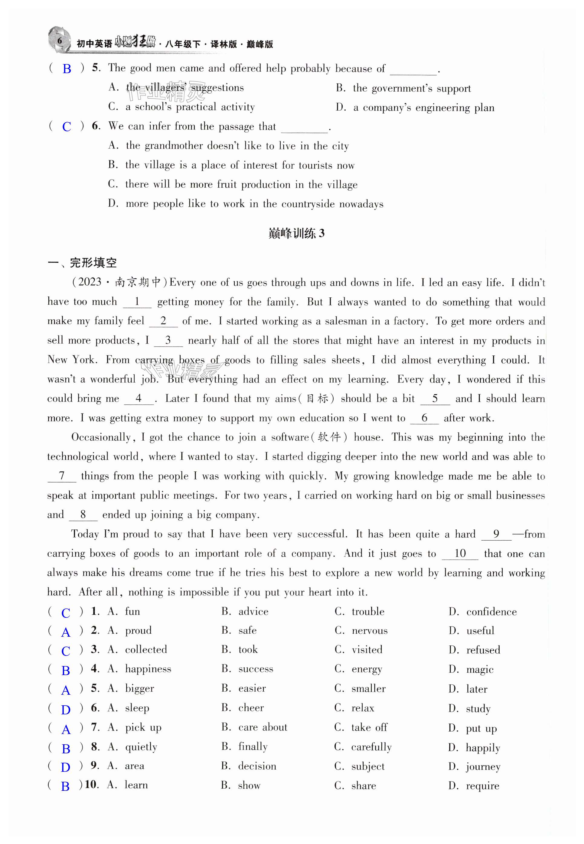 注:目前有些书本章节名称可能整理的还不是很完善,但都是按照顺序排列的,请同学们按照顺序仔细查找。练习册 2025年小题狂做八年级英语下册译林版巅峰版 答案主要是用来给同学们做完题方便对答案用的,请勿直接抄袭。