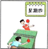 1. Let’s go and play table tennis. 2. What day is it today? 3. That makes a week. 4. Where’s the cat?