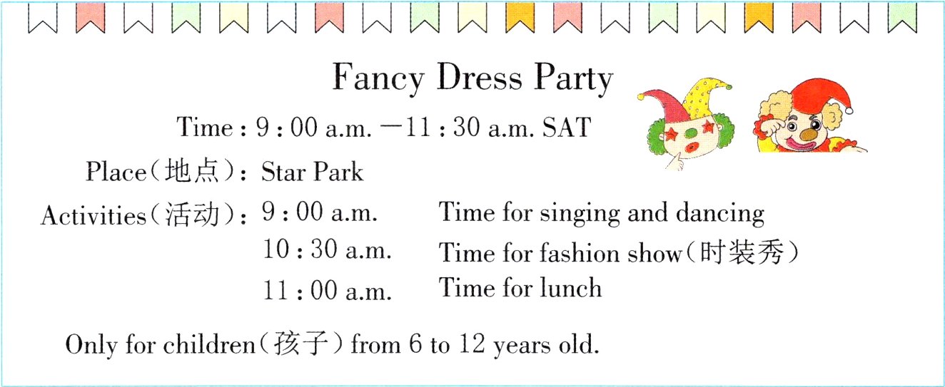 Activities(活动):9:00 a.m. Time for singing and dancing