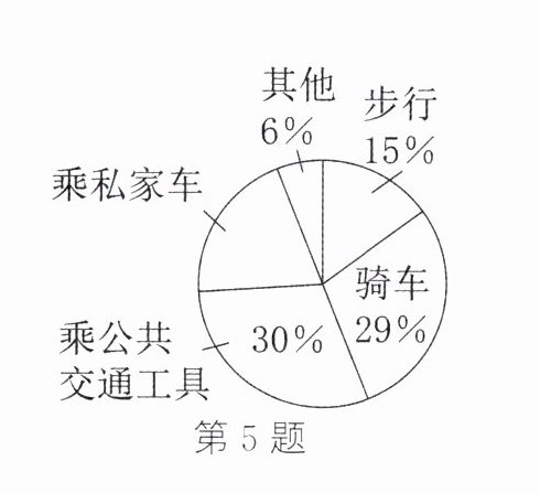 5. 某校有1 500名学生,为了解全校学生的上学方式,该校数学兴趣小组在全校随机抽取了100名学生进行调查,并整理样本数据,制成如下不完整的统计表和如图所示的扇形统计图: