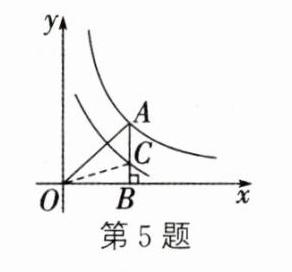 5. 如图,点 A 在双曲线$y = \frac{6}{x}(x>0)$上,过点 A 作 AB⊥x 轴于点 B,点 C 在线段 AB 上,且 BC:AC = 1:2. 若双曲线$y = \frac{k}{x}(x>0)$经过点 C,求 k 的值.