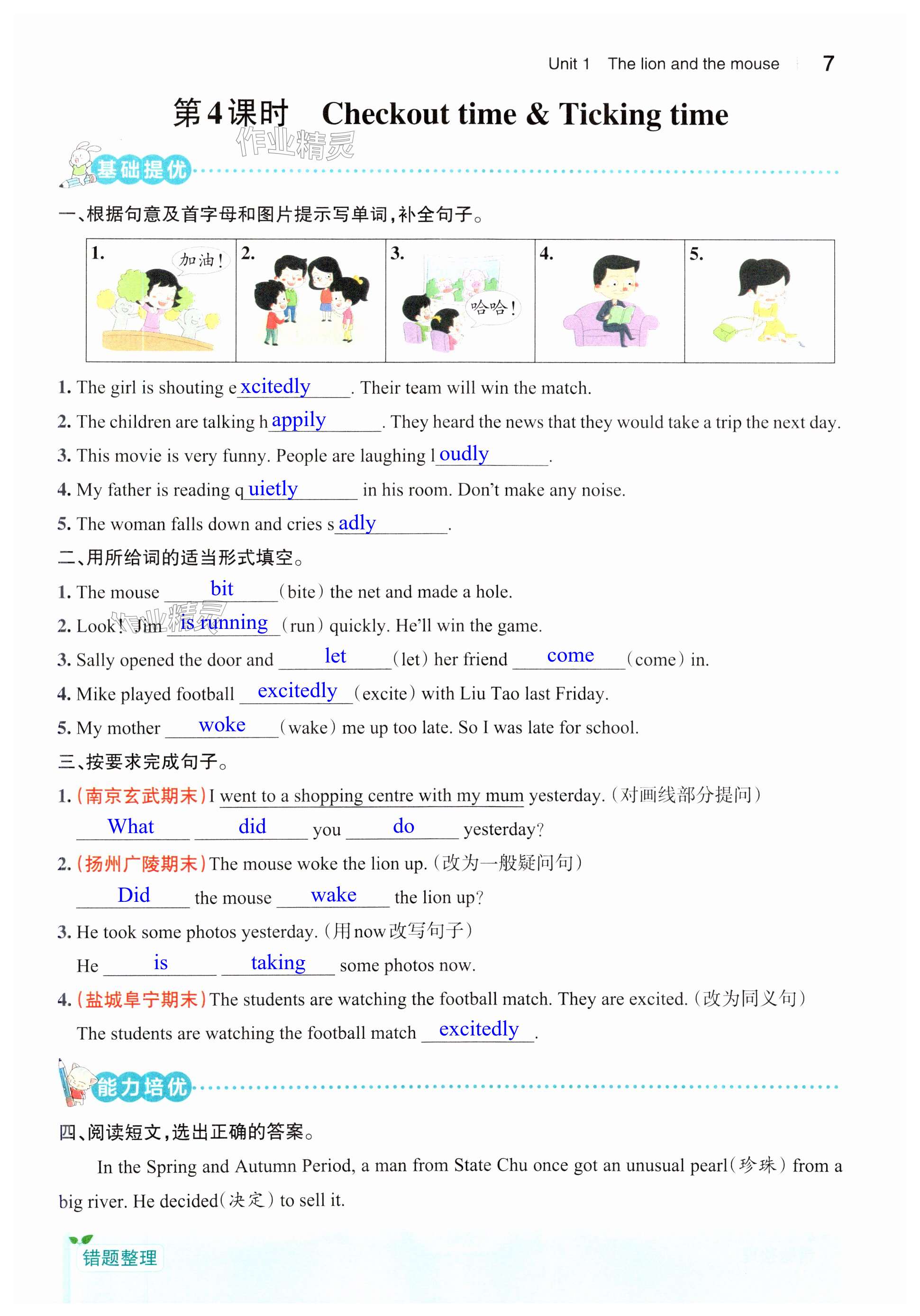 注:目前有些书本章节名称可能整理的还不是很完善,但都是按照顺序排列的,请同学们按照顺序仔细查找。练习册 2025年小学学霸作业本六年级英语下册译林版江苏专版 答案主要是用来给同学们做完题方便对答案用的,请勿直接抄袭。