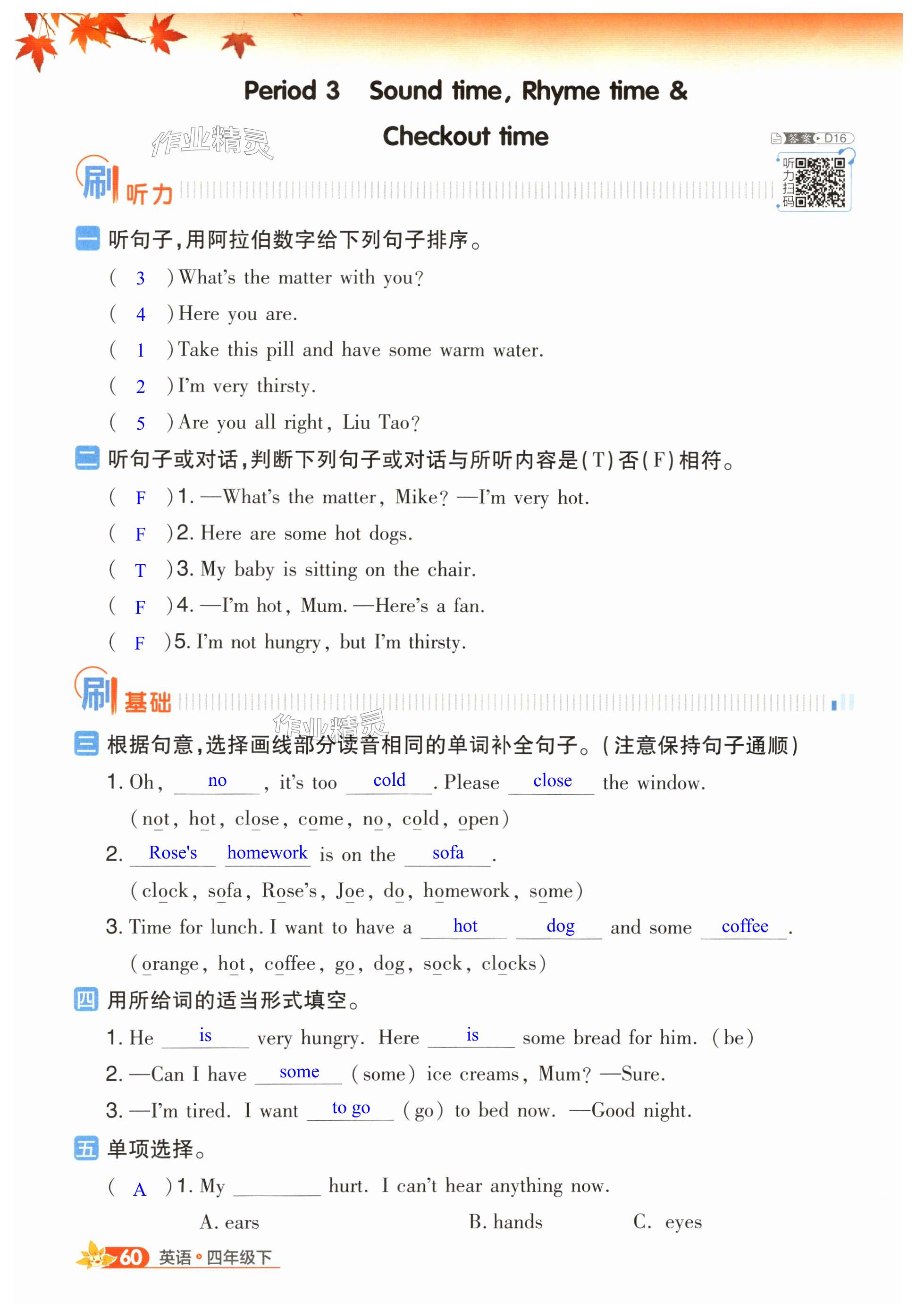 注:目前有些书本章节名称可能整理的还不是很完善,但都是按照顺序排列的,请同学们按照顺序仔细查找。练习册 2025年小学必刷题四年级英语下册译林版 答案主要是用来给同学们做完题方便对答案用的,请勿直接抄袭。