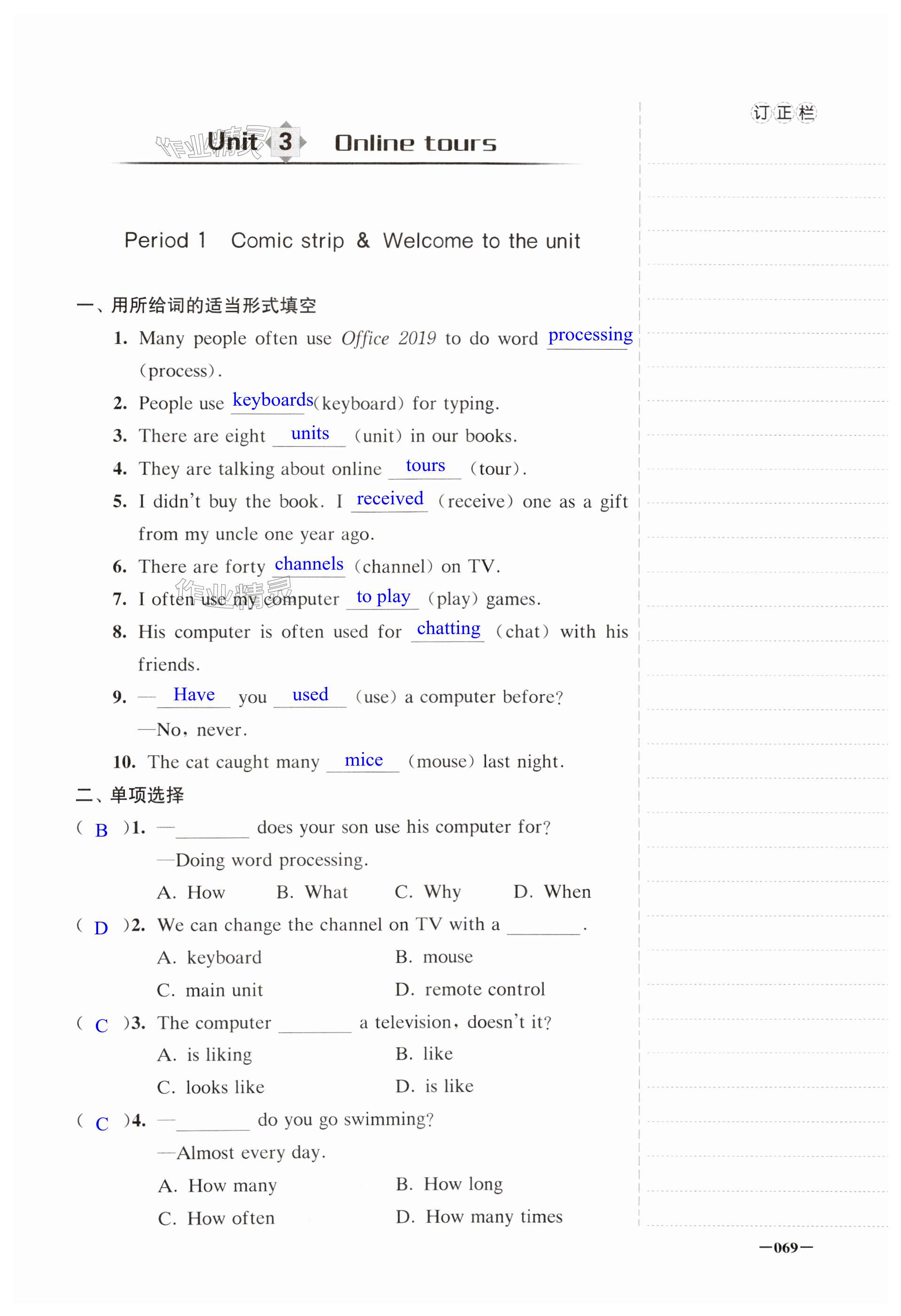 注:目前有些书本章节名称可能整理的还不是很完善,但都是按照顺序排列的,请同学们按照顺序仔细查找。练习册 2025年课堂追踪八年级英语下册译林版 答案主要是用来给同学们做完题方便对答案用的,请勿直接抄袭。