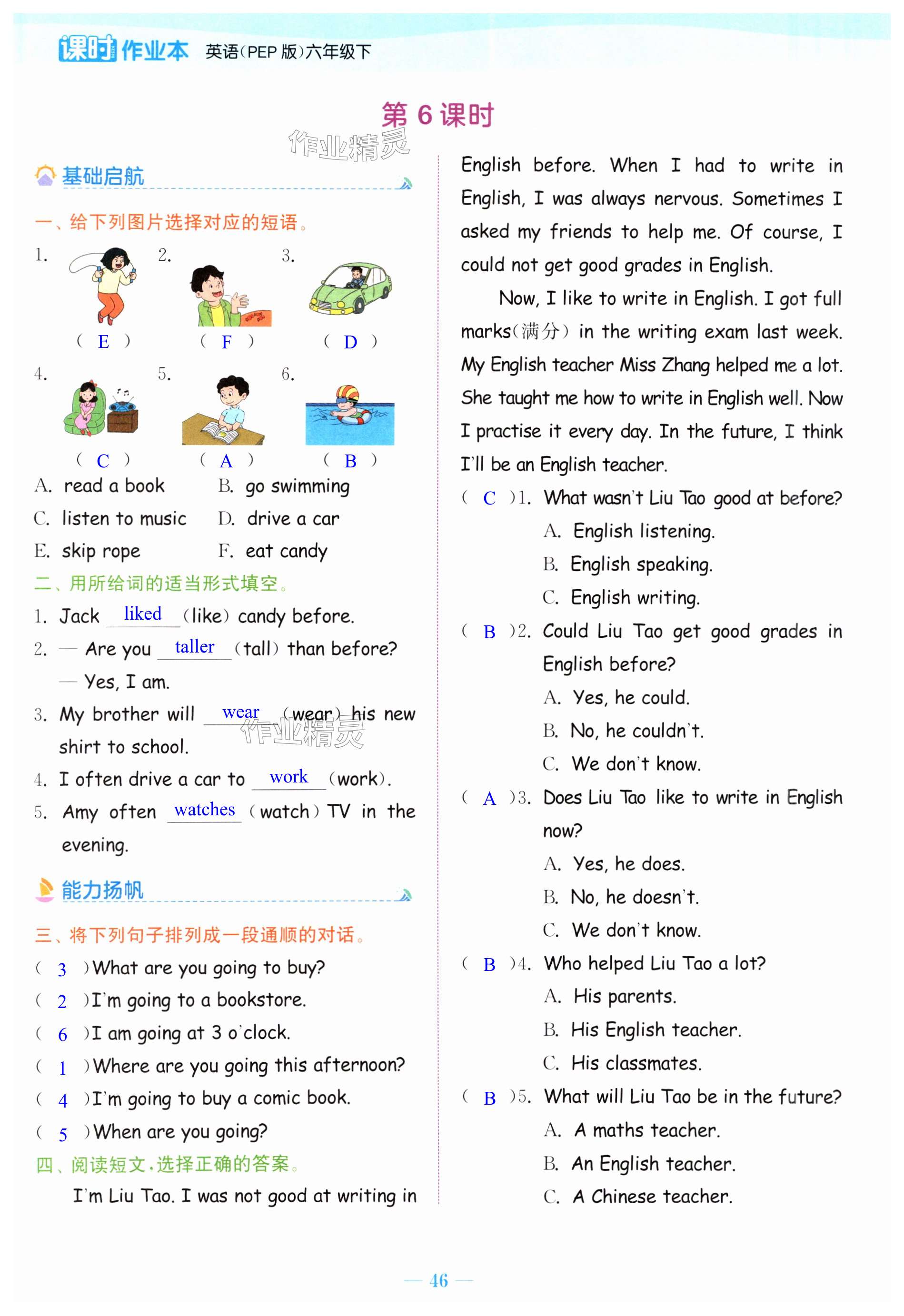 注:目前有些书本章节名称可能整理的还不是很完善,但都是按照顺序排列的,请同学们按照顺序仔细查找。练习册 2025年通城学典课时作业本六年级英语下册人教版 答案主要是用来给同学们做完题方便对答案用的,请勿直接抄袭。