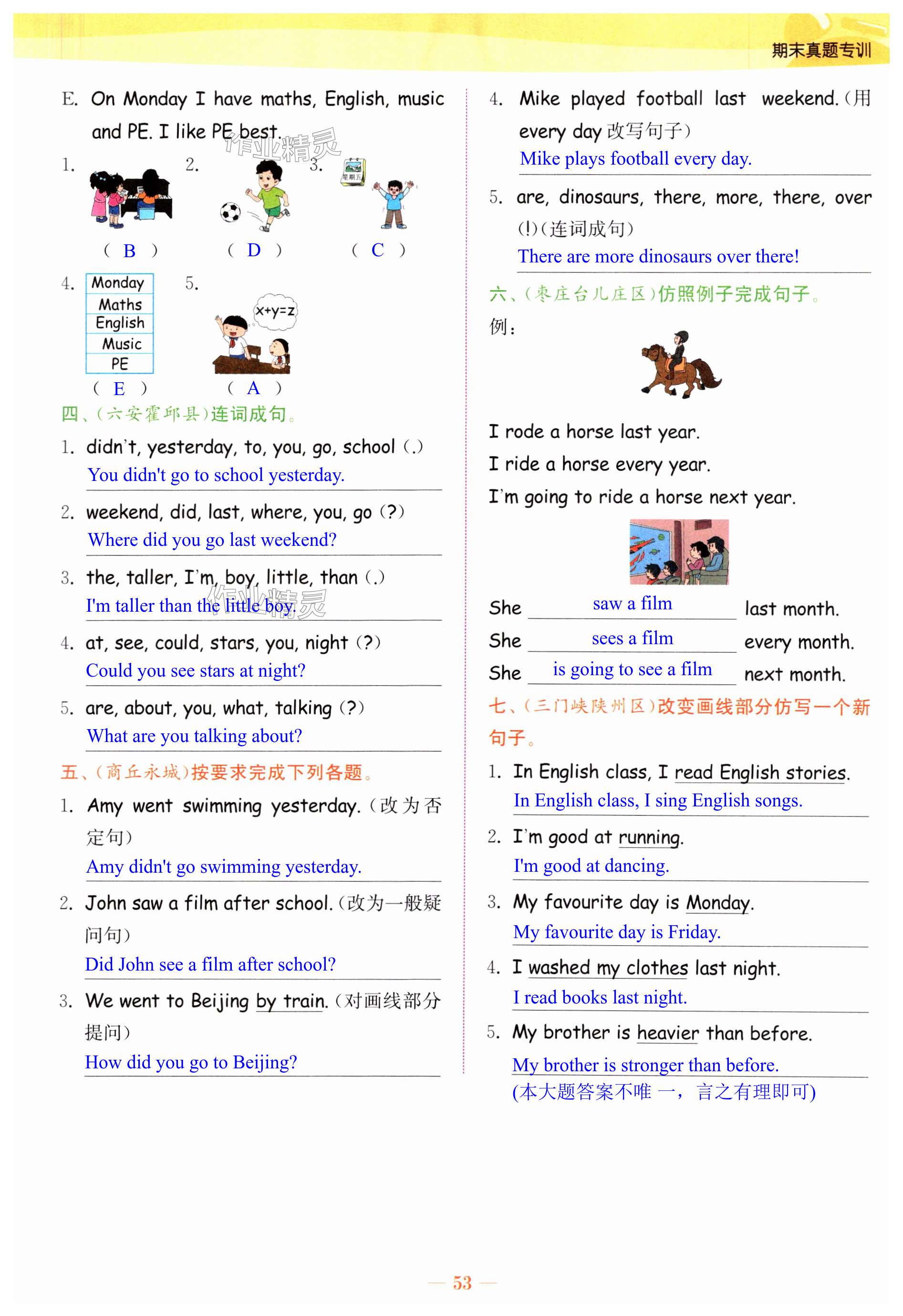 注:目前有些书本章节名称可能整理的还不是很完善,但都是按照顺序排列的,请同学们按照顺序仔细查找。练习册 2025年通城学典课时作业本六年级英语下册人教版 答案主要是用来给同学们做完题方便对答案用的,请勿直接抄袭。