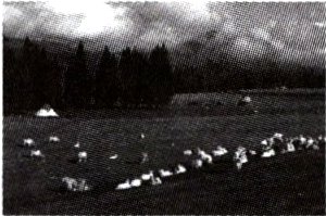 示例:蔚蓝的天空,朵朵的白云,映衬着绿毯一样的草坪。吃草的牛羊和放牧的牧民一起,构成了一幅淳朴、自然的草原放牧图。 解析:图中的景物有蓝天、白云、牛羊、草原等,根据景物可以看出这个画面描绘的是草原放牧的景象,再根据整体画面和具体景物,运用恰当的语言表达即可。