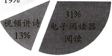C 解析:“视频讲诗”占 13%,因此 A 选项说法有误;选择手机阅读和网络在线阅读的同学分别占 19%和 18%,B 选项说法有误;D 选项说法在图表中无体现。网络在线阅读、手机阅读、电子阅读器阅读、视频讲诗均属于电子媒介,共占比 81%,C 选项说法正确。