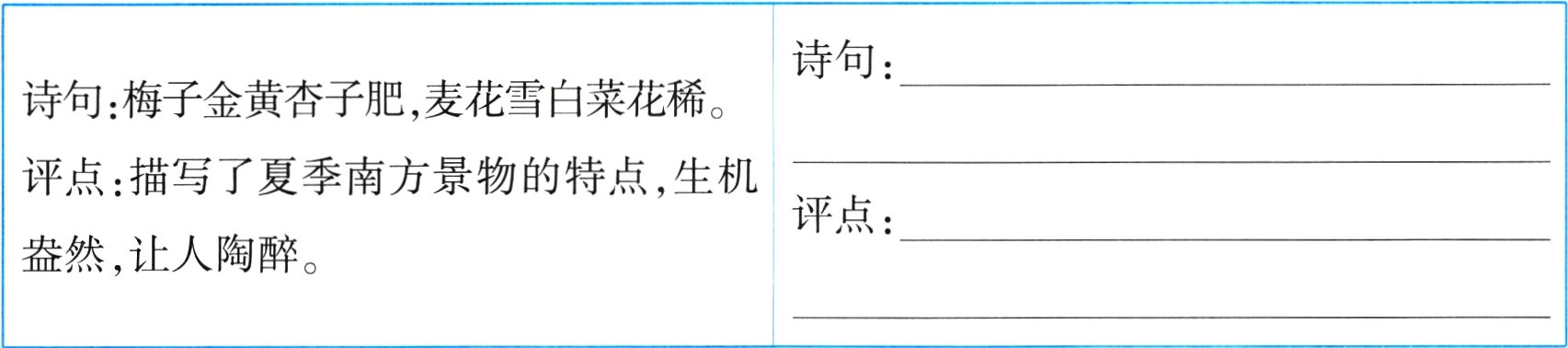 |诗句:梅子金黄杏子肥,麦花雪白菜花稀。|诗句:________________|