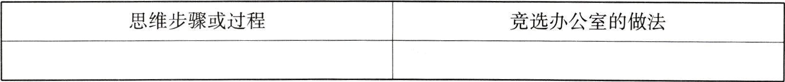 4. 示例:思维步骤或过程:与其找照相馆付钱,不如让照相馆来主动给版权,将竞选宣传册变成照相馆的宣传平台。 竞选办公室的做法:首先可以通知照相馆,竞选办公室将在制作的宣传册中放一些罗斯福总统的照片,而且照相馆的一张照片也在其中。再告诉他们有好几家照相馆都在候选名单中,出价最高的照相馆将会得到这次机会。(3分,建议合理即可) 解析:结合困境进行分析,现在是竞选办公室擅自用了照相馆的照片,本来应该办公室主动找照相馆解决,现在要化被动为主动,让照相馆主动给版权。因此可以利用罗斯福的名人效应,转变话术,让其为自己的宣传照买单。此题答案不唯一,言之有理即可。