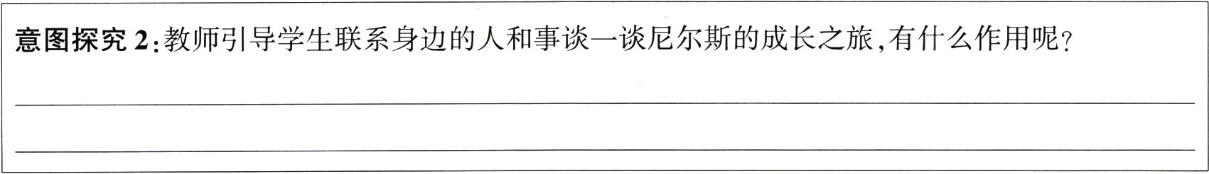 意图探究2:教师引导学生联系身边的人和事谈一谈尼尔斯的成长之旅,有什么作用呢?