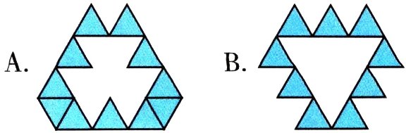A 提示:将空白部分分成同样大的小三角形,再数一数小三角形的个数进行比较。